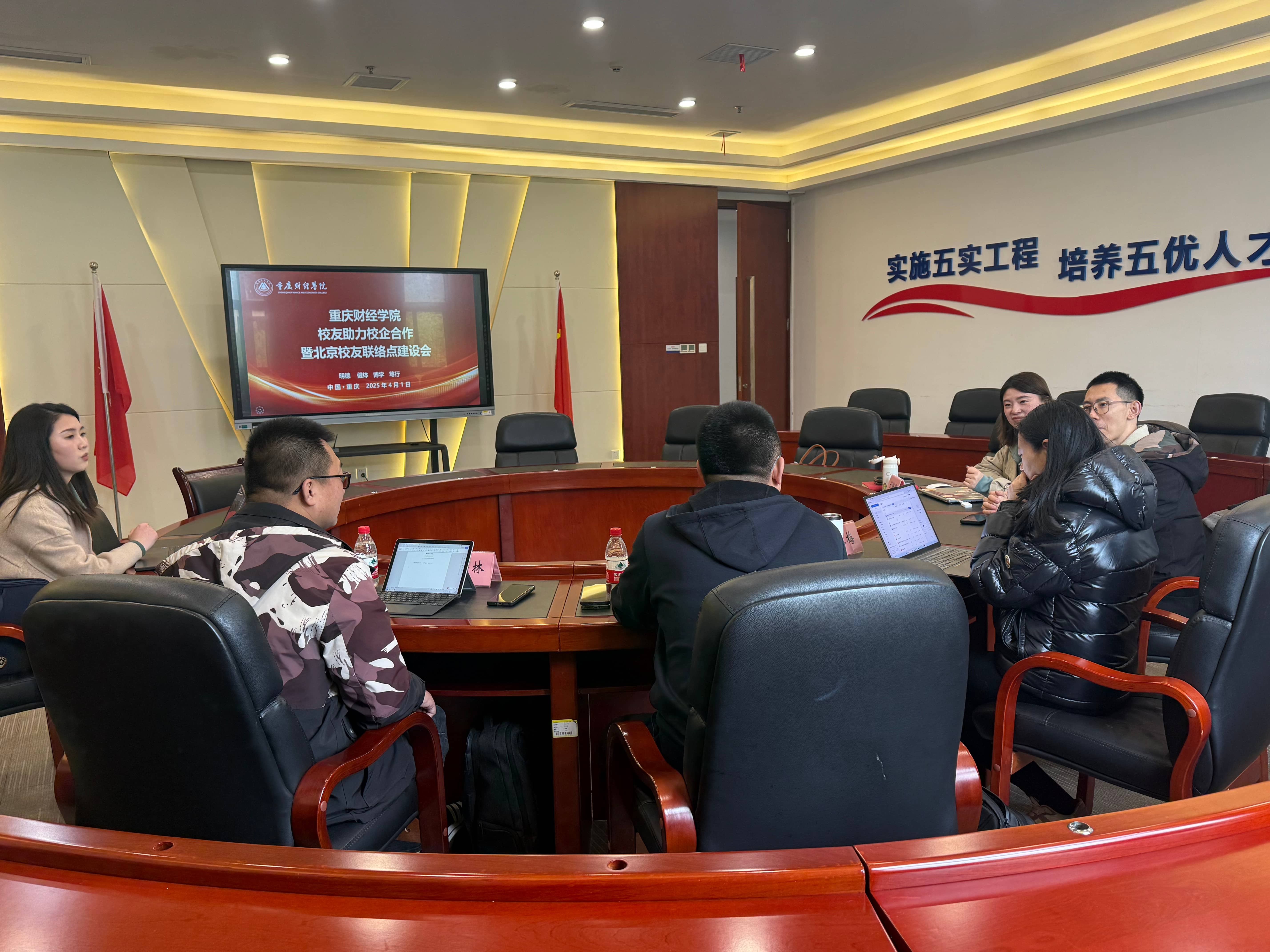 为深化重财校友企业与母校的协同创新,构建产教融合的长效合作机制,4月1日,重庆财经学院校长助理张红梅、校团委副书记刘艳娇及新媒体艺术学院教研室的相关负责人同2011级传媒经济校友李鹏飞在2302会议室就“校友助力校企合作暨北京校友联络点建设”进行交流,旨在探讨如何更好地将校友资源与学校发展相结合,特别关注新媒体专业的产教融合及当前就业形势。